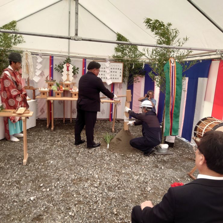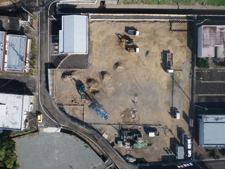 建物位置確認当日のドローン画像 数日後に安全祈願祭 を控えています。